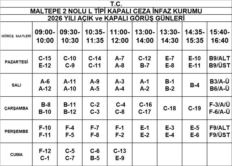 NOT: Her ayın ikinci tam haftası açık görüş yaptırılacaktır.